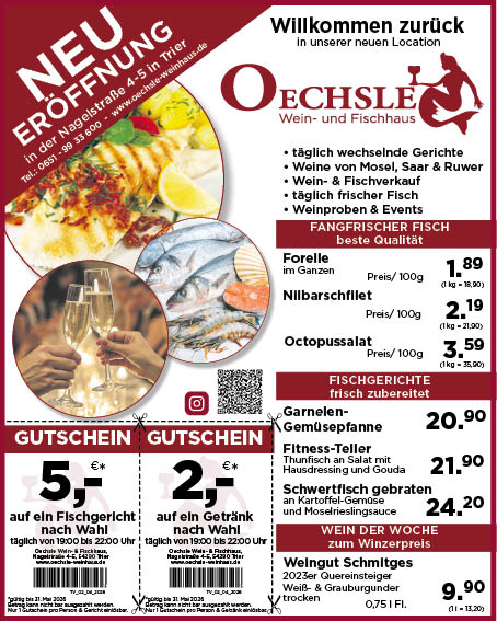 Genießen Sie täglich bei uns im Oechsle frische Fischgerichte und regionale Weine aus unserer Vinothek.