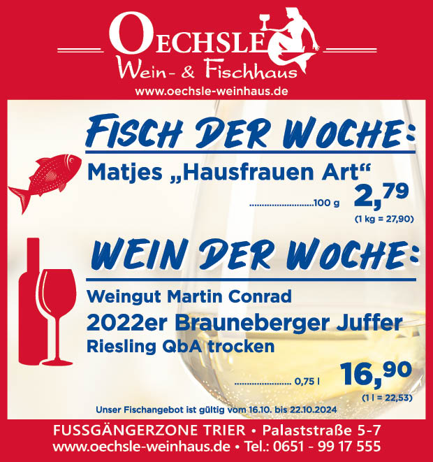 Genießen Sie täglich bei uns im Oechsle frische Fischgerichte und regionale Weine aus unserer Vinothek.